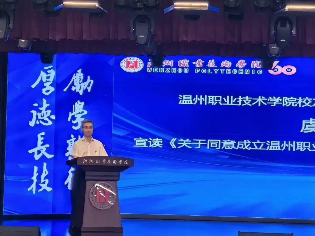 学校校友办副主任、校友会副秘书长虞希铅宣读了《关于同意成立温州职业技术学院鞋行业校友会的批复》文件。