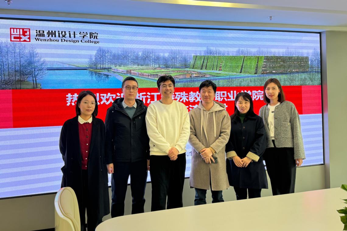 3月11日下午,浙江特殊教育职业学院数媒专业教研室主任王恪、视传本科专业教研室主任张艳敏、视传专业骨干教师黄娴一行到访我校。我校产品专业教研室主任史晓明、视传专业教研室主任朱雷鸣、视传专业教师曹益诚、教务科科长李小琦热情接待,并与来访嘉宾展开深入交流。双方围绕产教融合、专业建设、AI技术应用等议题展开研讨,共探视传专业职业教育发展。