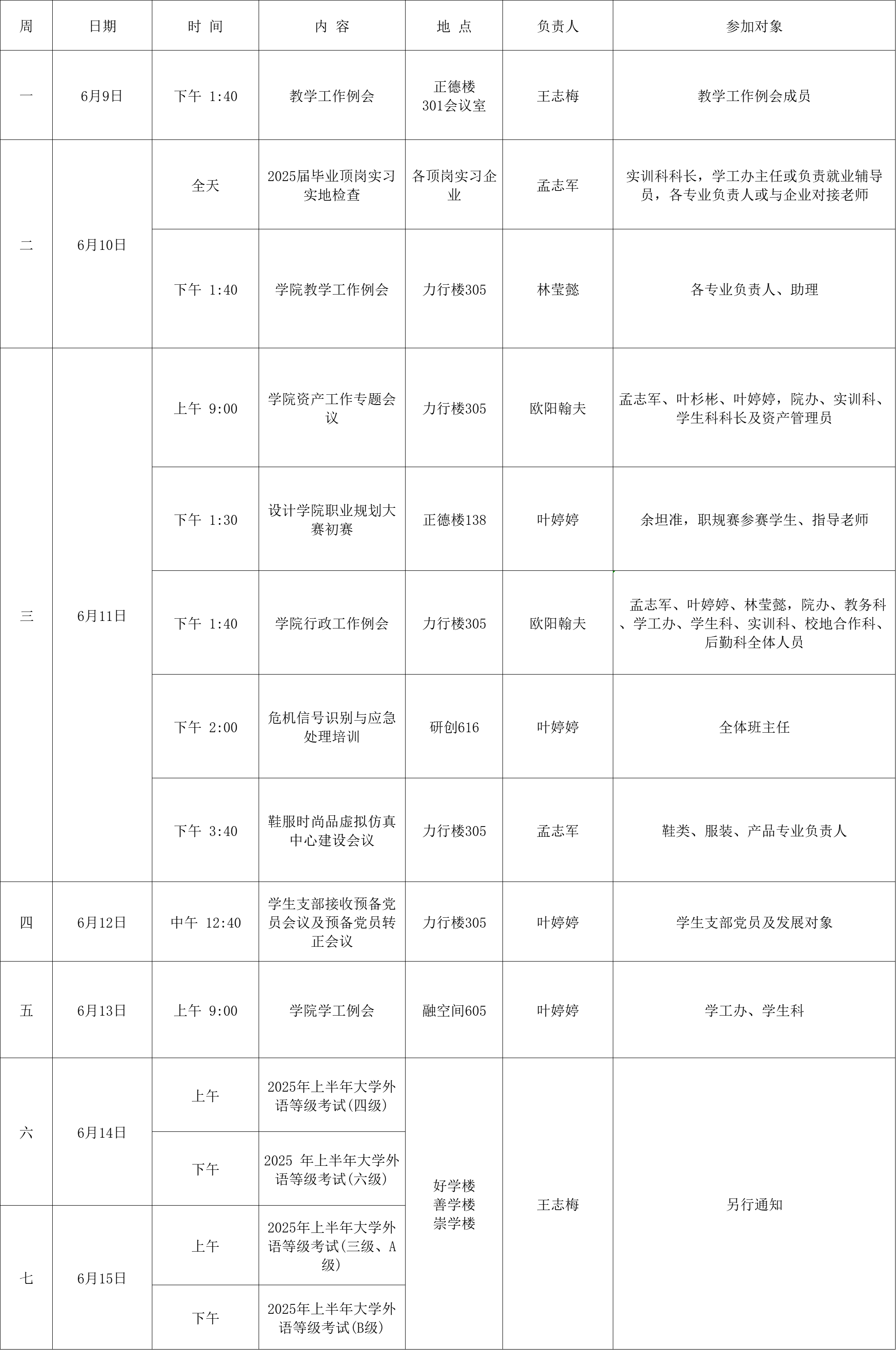 学院第18周行事历(6月9日-6月15日)