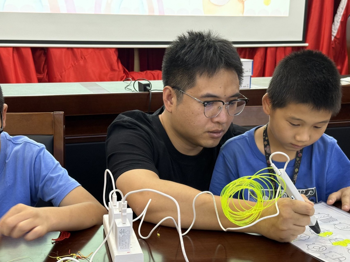 针对镬炉村村情与留守儿童需求,实践队坚守育人初心,精心打造美育思政课,打通乡村儿童暑期综合性教育“最后一公里”。队员们通过开设童心课堂,辅导儿童完成暑期作业,让他们“留”有所依;围绕美育思政,开展诗韵永嘉、漆扇画、蜡染方巾绘画等课程,提升孩子们对本土传统文化的认知,感受传统文化的魅力,开展风铃手工DIY、扭扭棒创意工坊、下田劳作等体验活动,丰富乡村儿童的暑期生活;引入科技课堂,携带3D打印技术下乡,带领儿童探索科技奥秘,提升创新认知,书写充满童趣与科学魅力的实践篇章。