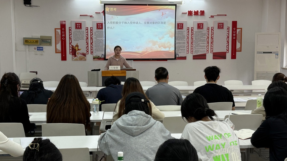 我院学生党支部宣传委员叶慧慧老师带来《发展党员基本程序和要求》专题党课。课堂上,叶老师紧扣入党条件、党员权利与义务、入党程序及手续等核心内容,进行了系统详实的解读,特别指出入党程序必须规范、严谨。她强调,入党是庄严神圣的政治选择,每一份材料的准备都要做到精准无误,这需要同学们以高度负责的态度对待。叶老师期望学员们提升理论修养,端正入党动机,筑牢理想信念根基,以党员标准严格要求自己,积极主动向党组织靠拢。