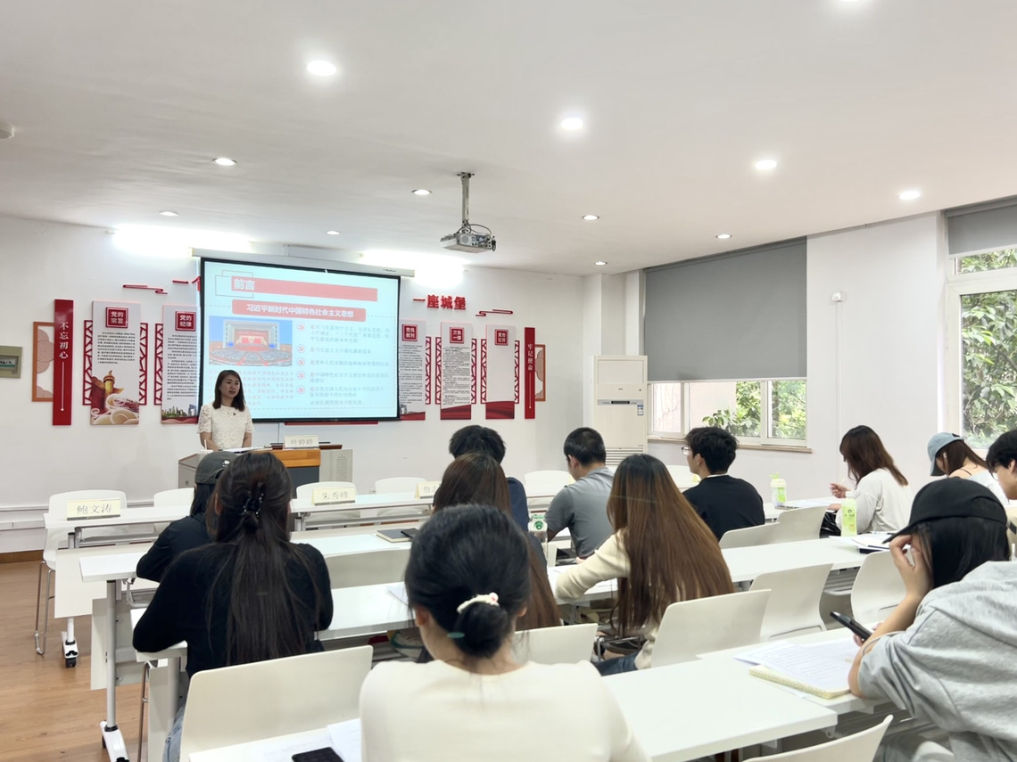 我院党总支副书记叶婷婷老师带来专题党课《习近平新时代中国特色社会主义思想》。授课过程中,叶老师引领学员以宏观视野与微观视角相结合的方式,深入研读习近平新时代中国特色社会主义思想。通过系统梳理理论要点、穿插典型实际案例,她强调学员不仅要通过持续学习提升理论水平与政治素养,更要紧密联系实际,深刻领会这一思想的丰富内涵和核心要义,将 “学懂弄通做实” 与 “武装头脑、指导实践、推动工作” 有机结合。