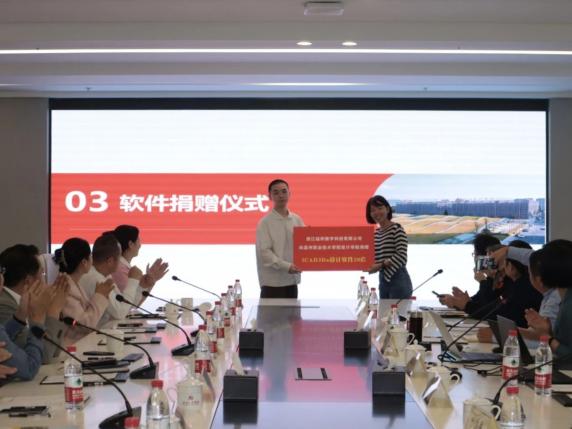 随后,会议举行了隆重的授牌和捐赠仪式。温州设计学院与浙江硅积数字科技有限公司签署合作协议,共同建设数字化鞋履设计人才培训实操基地。作为合作的一部分,浙江硅积数字科技有限公司向设计学院捐赠了20套ICAD3D+设计软件,以支持学院的教学和科研工作。