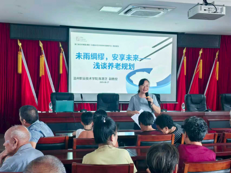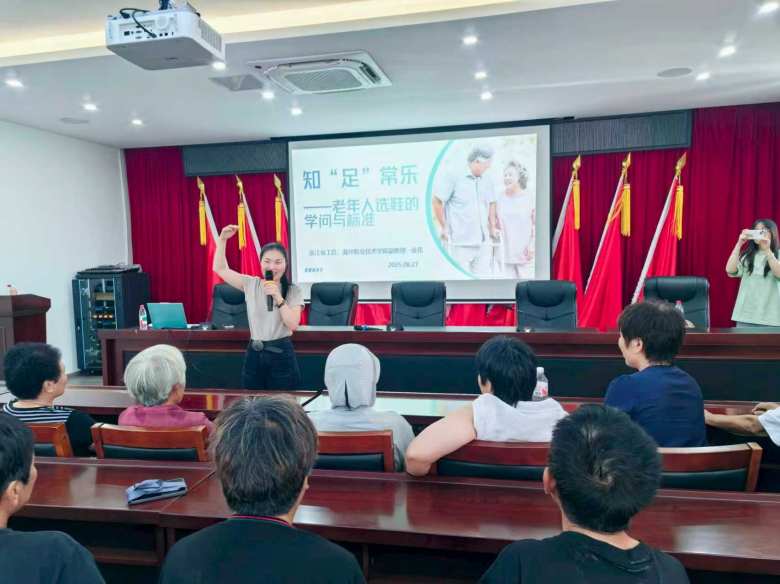 现场还融入多元化健康服务讲座,陈慧芝副教授通过老年职业生涯规划,引导村民积极规划晚年生活;朱家俊教师则以“好水养人又生金”为题,解读镬炉村水资源与健康之道;“浙江工匠”金花副教授分享老年人科学选鞋知识,守护“足下健康”;温职院工业设计研究所所长夏志良教授通过解析温州本地政策,为老人们分享了医疗保险等与老年生活息息相关的政策要点。老人们纷纷说,这些讲座很有用,非常感谢各位专家。