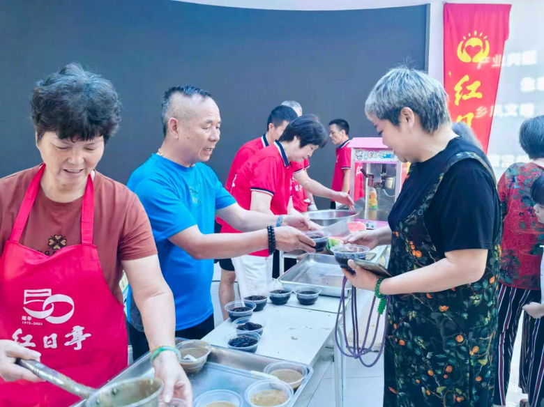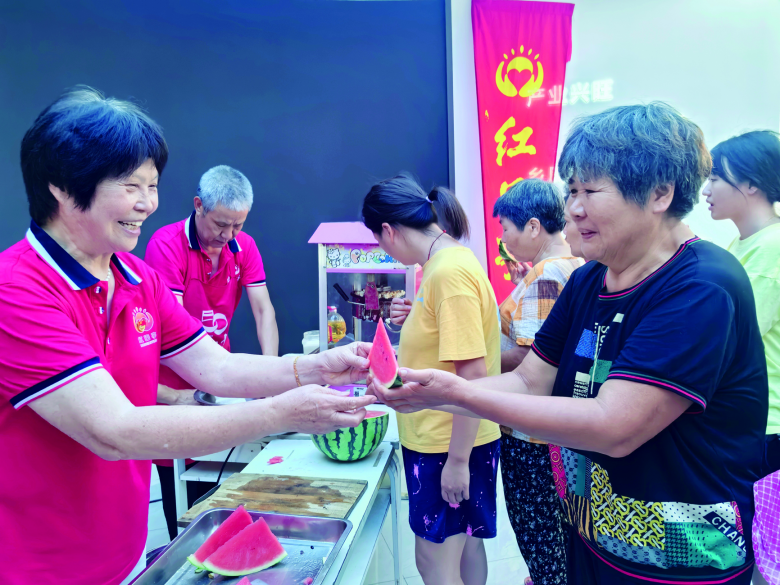 除了“文化大餐”,现场还有“清凉礼包”。红日亭负责人孙兰香带领义工陈兴社、苏联华、余建国、沙定发、黄加松、陈继月、周玉琴等,给当地村民送上西瓜、绿豆汤、凉粉、爆米花等清凉食品,陈忠慈善工作室送上沐浴露、洗发水、花露水等清凉用品。鹿城区隔壁邻舍志愿者协会副会长陈招乐也参加了送清凉活动。