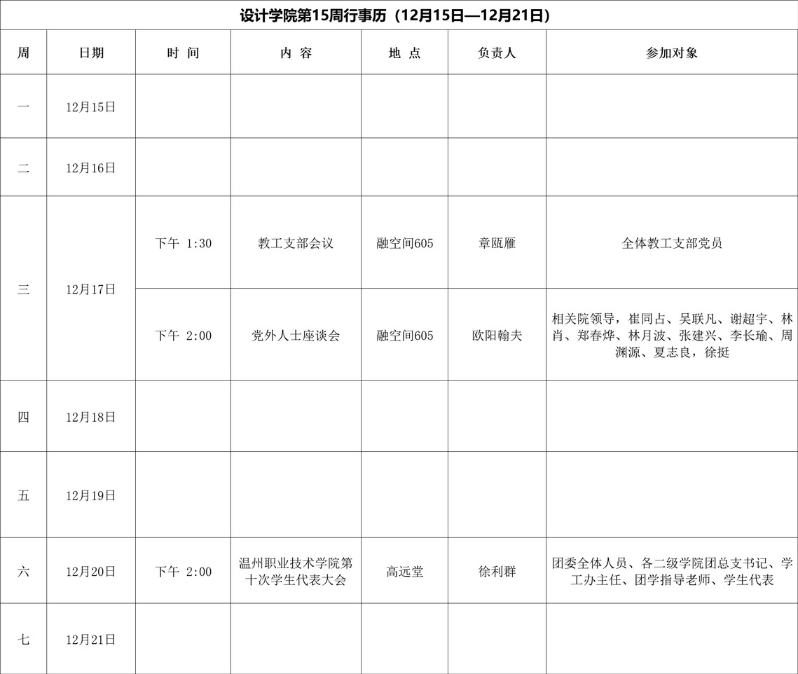 学院第15周行事历(12月15日-12月21日)
